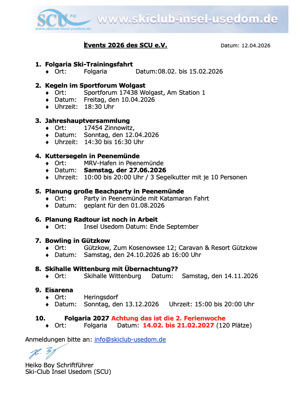 Übersicht der Events 2026 des SCU e.V.